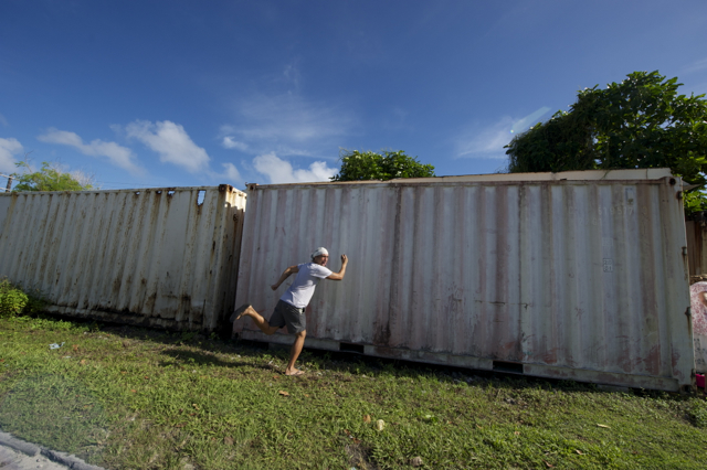 Making murals on shipping containers in Majuro. Photos © Christine Germano.