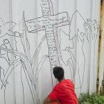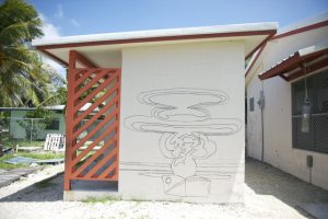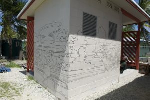 The murals were painted on three adjacent shipping containers made available to MAP by the Kramer family, founders of the construction company Pacific International Inc. The containers are right next to the main road that runs from one end of Majuro to the other, an ideal location for showcasing the children’s work to the wider community.