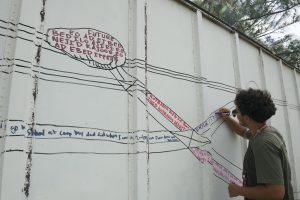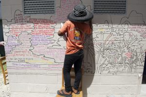 Writing personal testimonials on the murals. Photos © Christine Germano.
