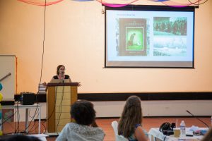 Shari Sabeti explained the process and the results of the project’s social science research, looking at patterns that emerged in the students’ poetry and challenges that arose in the poetry workshops: